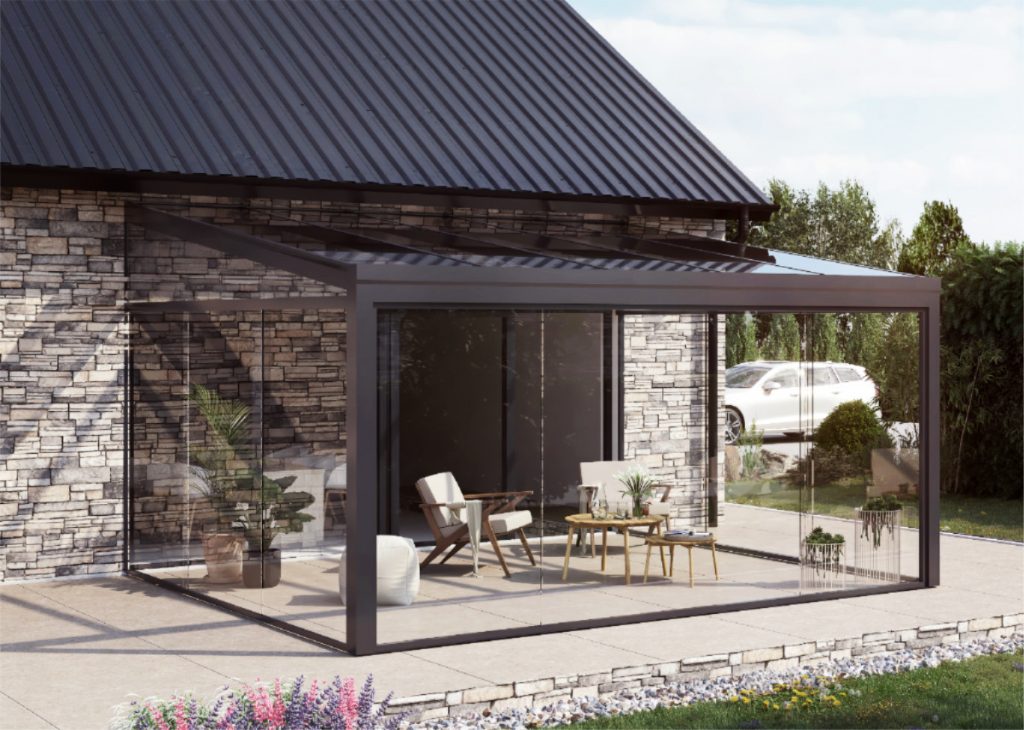 ELEGANTNÍ PROPOJENÍ PROSTORU S EXTERIÉREM Čisté linie prosklené střechy vás uchvátí.Využití skla má v soudobé architektuře pevné místo. Nejde přitom jen o velkoformátová okna a velké proskleně stěny, ale také zastřešení venkovních prostorů. Důkazem toho je pergola TIRA s prosklenou střechou, která opticky propojí vnitřní prostory s exteriérem. Pergola se skleněnou střechou boří zažité představy o tradičních zasklených přístřešcích, které působily až příliš robustně a fádně. TIRA se vyznačuje čistými liniemi a jednoduchými tvary, které vyniknou u moderně, industriálně i minimalisticky koncipovaných staveb. Střecha pergoly je zhotovena z 8 mm silného bezpečnostního skla v čirém, nebo mléčném provedení. Dešťová voda je ze střechy odváděna pomocí okapového a svodového systému, který je integrovaný ve stojině přední části pergoly. Díky prosklení bude prostor pergoly chráněn před vlivy počasí a současně zajistí maximální prostup přirozeného světla. Prosklenou pergolu vybavíme stíněním i dalšími prvky.Hliníková konstrukce prosklené pergoly TIRA působí minimalisticky, přesto vyniká stabilitou a odolností. Vyrábíme ji z kvalitních silnostěnných profilů z extrudovaného hliníku, které snadno ukotvíte k domu, nebo samostatně postavíte na patky. Konstrukce vyniká dlouhou životností a snadnou údržbou. Mezní rozměry dosahují šířky 7000 mm a hloubky 4000 mm. Pergolám s prosklenou střechou sluší stínicí prvky v podobě venkovních rolet, textilních a screenových rolet, nebo žaluzií. Zajistí snadnou regulaci množství přirozeného světla podle vašich potřeb. Rádi vám k pergole dodáme i další příslušenství, díky kterému si pobyt na pergole užijete po celý rok a za jakéhokoliv počasí. Patří mezi něj celkové či částečné boční prosklení nebo LED osvětlení. Tento typ pergoly standardně dodáváme v bílé, hnědé a antracitové barvě. Na přání však rádi zajistíme i lakování do jakékoliv odstínu ze vzorníku RAL. Řada odstínů je dostupné jak v matném, tak lesklém provedení.